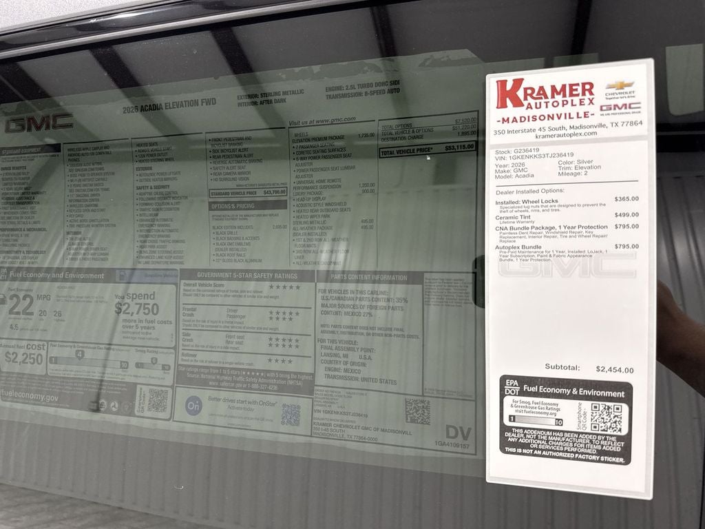 Discover exceptional value with this 2026 GMC Acadia FWD Elevation, now available in Madisonville, TX. Stylish and efficient, this GMC Acadia pairs a responsive 4-cylinder 2.5L gasoline engine with front-wheel drive for confident everyday performance and excellent fuel economy. The Elevation trim adds bold exterior accents and comfortable interior features that make every drive enjoyable. Inside, stay connected with Apple CarPlay for seamless smartphone integration and entertainment on the go. Safety and convenience are covered with a Back-Up Camera for easier parking, Lane Keep Assist to help maintain lane position, and Remote Start for comfort on hot or cool Texas mornings. The Heated Steering Wheel delivers extra comfort during chilly drives, while thoughtful cabin design and modern tech keep passengers happy mile after mile. This 2026 GMC Acadia FWD Elevation delivers a balanced mix of capability, style, and technology at the best price in Madisonville, TX. Whether you're commuting, running errands, or heading out of town, this SUV is ready to handle it with efficiency and confidence. Schedule a test drive today to experience the 2.5L GMC Acadia's smooth performance and feature-rich cabin — priced to sell and ready for immediate delivery.