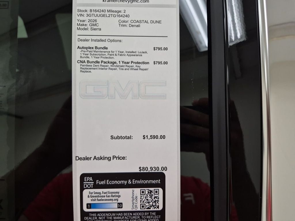 The leather seats in the GMC Sierra are a must for buyers looking for comfort, durability, and style. See what's behind you with the back up camera on it. Start this 2026 GMC Sierra 1500 from inside with remote start. This GMC Sierra's Lane Departure Warning keeps you safe by alerting you when you drift from your lane. The steering wheel audio controls on this GMC Sierra keep the volume and station within easy reach. You'll never again be lost in a crowded city or a country region with the navigation system on it. Apple CarPlay: Seamless smartphone integration for this unit - stay connected and entertained on the go! This 2026 GMC Sierra 1500 comes equipped with Android Auto for seamless smartphone integration on the road. This 2026 GMC Sierra 1500 is equipped with the latest generation of XM/Sirius Radio. The vehicle is pure luxury with a heated steering wheel.