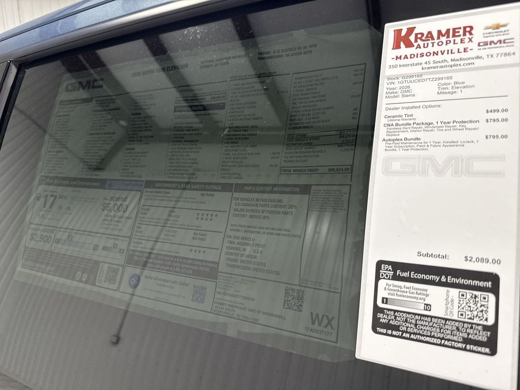 2026 GMC Sierra 1500 Elevation 4WD with the robust 5.3L V8 gasoline engine, now available in Madisonville, TX. This GMC Sierra Elevation delivers powerful performance, confident handling from its four-wheel-drive capability, and towing-ready capability for work or weekend adventures. With the best price in the area, this truck combines capability and value for buyers seeking a rugged, refined full-size pickup. Inside, tech-forward features keep driver and passengers connected and comfortable. Apple CarPlay and Android Auto offer seamless smartphone integration, while built-in Navigation ensures you arrive on time for every trip. Lane Keep Assist adds an extra layer of safety for highway driving, and the heated steering wheel enhances comfort during cooler mornings. The interior reflects the Elevation trim's balance of utility and style, featuring durable materials and smartly arranged controls. Exterior design emphasizes a bold, muscular presence with distinctive GMC Sierra styling and functional elements for hauling gear and supplies. Practical bed features and available towing packages make this GMC Sierra a versatile workhorse. Regular maintenance history and quality checks ensure dependable performance from day one. Located in Madisonville, TX, this 2026 GMC Sierra 1500 Elevation 4WD with the 5.3L V8 is competitively priced and ready for a test drive. Contact us to schedule a viewing and lock in the best price on a capable, tech-equipped pickup.