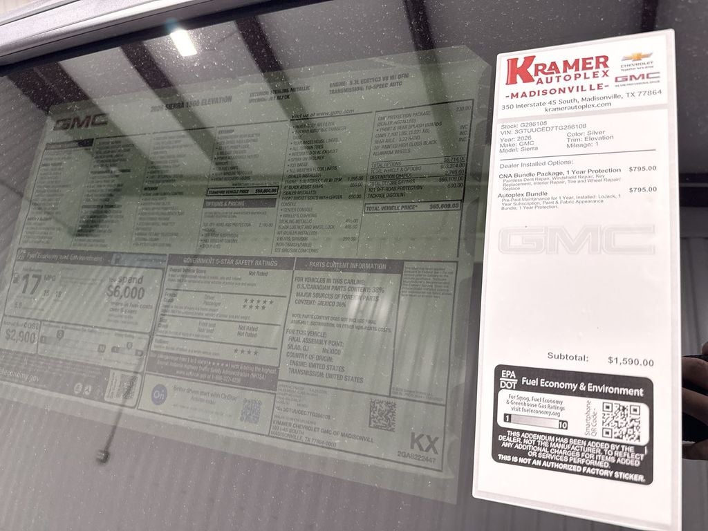 Discover the 2026 GMC Sierra 1500 Elevation 4WD in Madisonville, TX — a powerful, stylish truck built for work and weekend adventures. This GMC Sierra 1500 features a robust V8 5.3L gasoline engine, delivering confident towing and acceleration when you need it most. With four-wheel drive, this truck handles rough roads, wet conditions, and off-road excursions with ease. Loaded with premium tech and comfort, the GMC Sierra Elevation includes Navigation to keep you on course, Android Auto for seamless smartphone integration, and Remote Start for convenience and climate control before you step inside. The Heated Steering Wheel adds a touch of luxury for cold mornings, while Lane Keep Assist enhances safety on long drives and busy highways. This 2026 GMC Sierra 1500 Elevation stands out with bold exterior styling, a spacious cabin, and a versatile bed for hauling gear. Whether you're towing a trailer, commuting, or heading out for a weekend escape, this truck answers the call with power, capability, and modern features. Located in Madisonville, TX, this GMC Sierra 1500 Elevation is offered at the best price — a competitive value for a high-demand, low-mileage truck with V8 performance and 4WD confidence. Don't miss the chance to own a top-tier GMC Sierra that combines capability, comfort, and cutting-edge technology. Schedule a test drive today and experience why this GMC Sierra 1500 is the smart choice for Texan drivers.