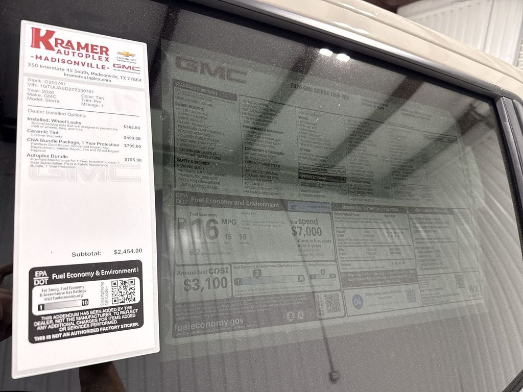 Discover unbeatable value in Madisonville, TX with this 2026 GMC Sierra 1500 Pro 4WD — a powerful, confident pickup built to work hard and turn heads. Powered by a robust V8 5.3L gasoline engine, this GMC Sierra delivers the torque and towing capability you need for trailers, jobsite gear, and weekend adventures. With 4WD, it handles rough terrain and wet roads with confidence, so you can go farther with peace of mind. This GMC Sierra 1500 Pro is packed with modern safety and connectivity features, including a Back-Up Camera for easy parking and trailer hookup, Lane Departure Warning to help avoid unintentional lane changes, and Hands-Free Bluetooth® for safe calling on the go. Stay connected with Android Auto and Apple CarPlay integration, giving you seamless access to navigation, music, and apps from your compatible phone. The exterior is aggressive and purposeful, while the interior balances durable materials with thoughtful technology—perfect for workdays and road trips alike. This truck has been competitively priced to sell and currently offers the best price in Madisonville, TX, making it an exceptional opportunity for buyers seeking performance, capability, and modern convenience without overpaying. If you're in Madisonville or nearby, don't miss this chance to own a 2026 GMC Sierra 1500 Pro 4WD V8 5.3L with top-tier features and the best price in the area. Schedule a test drive today and experience the difference.