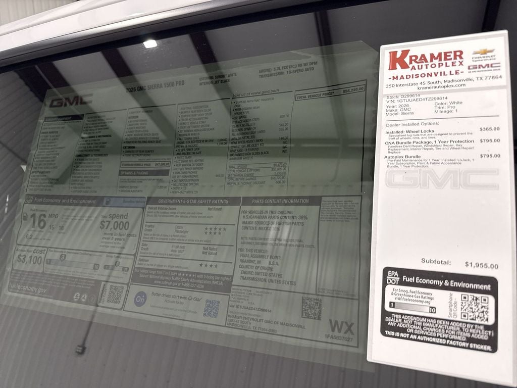 Experience power and capability with this 2026 GMC Sierra 1500 Pro 4WD, featuring a robust V8 5.3L gasoline engine—perfect for towing, hauling, and confident everyday driving. Located in Madisonville TX, this GMC Sierra 1500 Pro delivers the strength and reliability you expect from GMC with modern technology and driver-assist features that enhance safety and convenience. Inside, enjoy seamless connectivity with Hands Free Bluetooth® and Android Auto, keeping your devices integrated for navigation, calls, and media. The Back-Up Camera provides clear rear visibility for safer parking and reversing maneuvers. Advanced safety systems include Lane Departure Warning and Lane Keep Assist, designed to help maintain lane position and reduce the stress of long highway drives. This GMC Sierra 1500 Pro 4WD combines rugged performance with refined comfort. The powerful V8 5.3L engine provides ample torque for towing trailers and managing tough terrain, while four-wheel drive capability ensures traction in varying road conditions. Well-equipped for work or weekend adventures, this truck balances utility with modern convenience features. Located in Madisonville TX and offered at the best price, this 2026 GMC Sierra 1500 Pro 4WD is an exceptional value for buyers seeking durability, safety, and technology in a full-size pickup. Contact us today to schedule a test drive and experience the performance and features of this GMC Sierra in person.