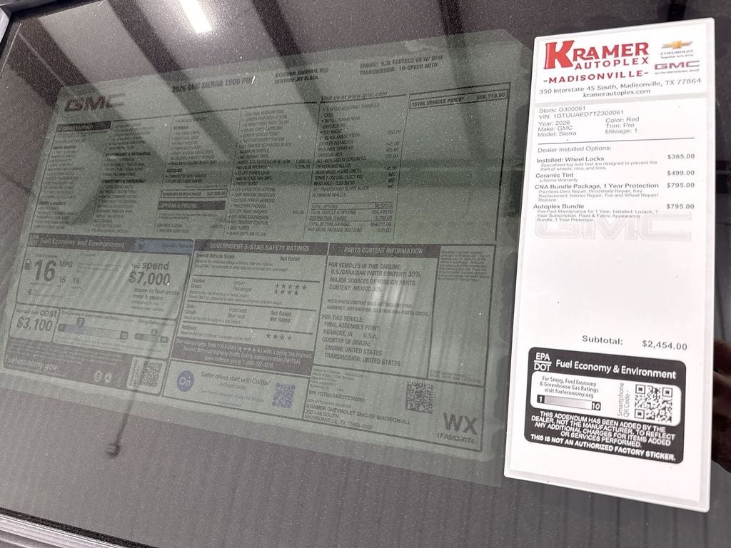 Discover unbeatable value with this 2026 GMC Sierra 1500 Pro 4WD, now available in Madisonville, TX. Powered by a robust V8 5.3L gasoline engine, this GMC Sierra delivers exceptional towing and confident performance on highway and off-road terrain. Equipped with the Off-Road Package, upgraded suspension and skid protection make it ready for rugged trails while maintaining a smooth daily driving experience. Inside, enjoy seamless smartphone integration with Apple CarPlay and Android Auto, keeping navigation, music, and calls at your fingertips. Comfort and convenience features include Remote Start for temperature-controlled cabin readiness and advanced safety with Lane Departure Warning to help keep you centered and secure on long drives. This 2026 GMC Sierra 1500 Pro combines capability and modern technology without compromising value — we offer the best price in Madisonville, TX. Ideal for drivers who need a powerful truck for work, recreation, or family adventures, the GMC Sierra 1500 Pro balances utility and comfort with premium features and a commanding presence. Don't miss your chance to own a top-tier 4WD V8 pickup at a price that stands out. Contact us today in Madisonville, TX to schedule a test drive or to get immediate financing options and see why this GMC Sierra is the smart choice for your next truck purchase.