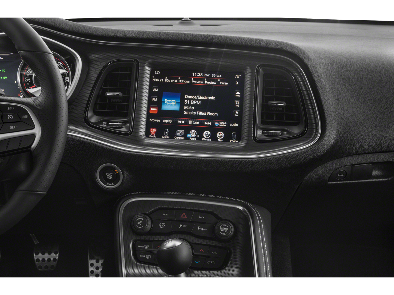 See what's behind you with the back up camera on this Dodge Challenger. Keep your hands warm all winter with a heated steering wheel in this 2015 Dodge Challenger . This unit keeps you comfortable with Auto Climate. It's Forward Collision Warning system alerts the driver to potential front-end collisions, enhancing safety. This model has auto-adjust speed for safe following. The vehicle has a clean CARFAX vehicle history report. with XM/Sirus Satellite Radio you are no longer restricted by poor quality local radio stations while driving this model. Anywhere on the planet, you will have hundreds of digital stations to choose from. The state of the art park assist system will guide you easily into any spot. This mid-size car features a hands-free Bluetooth® phone system. The installed navigation system will keep you on the right path. Never get into a cold vehicle again with the remote start feature on this vehicle.