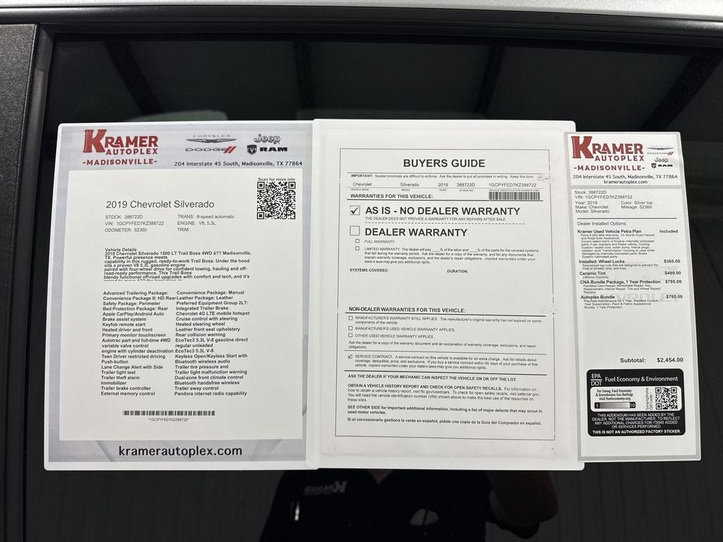 2019 Chevrolet Silverado 1500 LT Trail Boss 4WD — Madisonville, TX. Powerful presence meets capability in this rugged, ready-to-work Trail Boss. Under the hood sits a proven V8 5.3L gasoline engine paired with four-wheel drive for confident towing, hauling and off-road-ready performance. This Trail Boss blends functional off-road upgrades with comfort and tech, and it's priced to move — the best price in Madisonville.