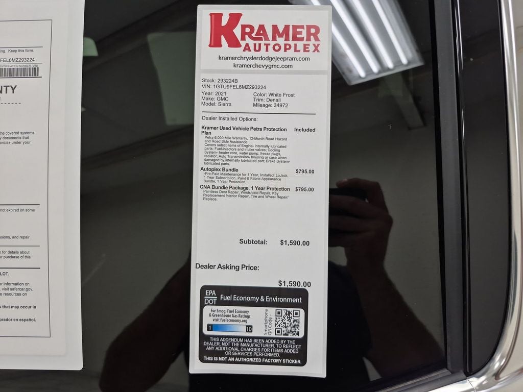 Driver Alert Package I: Ultrasonic Front and Rear Park Assist; Rear Cross Traffic Alert; Lane Change Alert with Side Blind Zone Alert. Driver Alert Package II: Forward Collision Alert; Lane Keep Assist with Lane Departure Warning; Front Pedestrian Braking; Following Distance Indicator; Automatic Emergency Braking; IntelliBeam Automatic High Beam On/off; Adaptive Cruise Control. Technology Package: HD Surround Vision with 2 Trailer View Camera Provisions; Multicolor 15" Diagonal Head-Up Display; Bed View Camera; Rear Camera Mirror. Denali Ultimate Package: GMC MultiPro Power Steps; Power Sunroof; Wheel Locks (set of 4); 22" X 9" Multi-Dimensional Polished Aluminum Wheels. Preferred Equipment Group 5SA: Chrome Wheel to Wheel Assist Steps; 2 USB Ports (1st Row); Power Sliding Rear Window with Rear Defogger; Safety Alert Seat; Electric Rear-Window Defogger; Theft Deterrent System (unauthorized Entry); Signature Denali Grille; Heavy-Duty Air Filter; Compass; 120-Volt Instrument Panel Power Outlet; Heated Driver and Front Outboard Passenger Seating; Wireless Charging; Color-Keyed Carpeting Floor Covering; OnStar and GMC Connected Services Capable; Power F