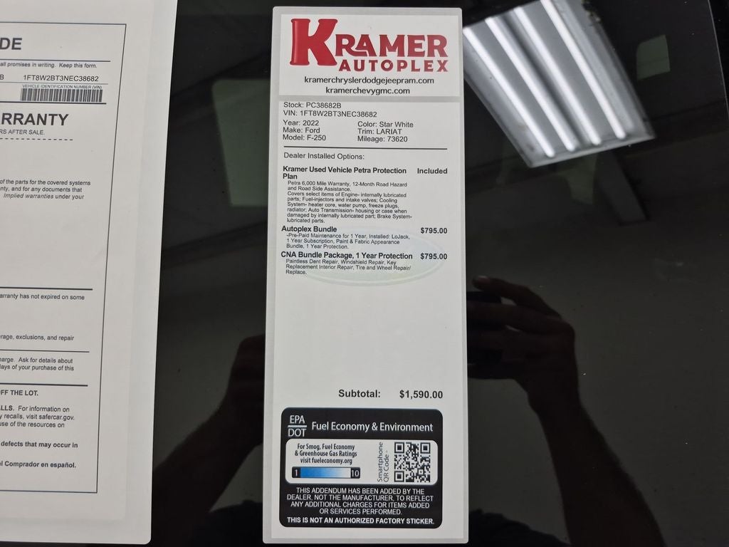 You'll never again be lost in a crowded city or a country region with the navigation system on this model. This model has a clean CARFAX vehicle history report. The leather seats in this unit are a must for buyers looking for comfort, durability, and style. This Ford F-250 has auto-adjust speed for safe following. This vehicle is pure luxury with a heated steering wheel. Start this Ford F-250 from inside with remote start. This unit is equipped with the latest generation of XM/Sirius Radio. Apple CarPlay: Seamless smartphone integration for this 2022 Ford F-250 Super Duty - stay connected and entertained on the go! An off-road package is equipped on this Ford F-250. Protect this 2022 Ford F-250 Super Duty from unwanted accidents with a cutting edge backup camera system. This Ford F-250's Cross-Traffic Alert: Safeguarding you from unexpected traffic when reversing. The vehicle's Lane Departure Warning keeps you safe by alerting you when you drift from your lane.