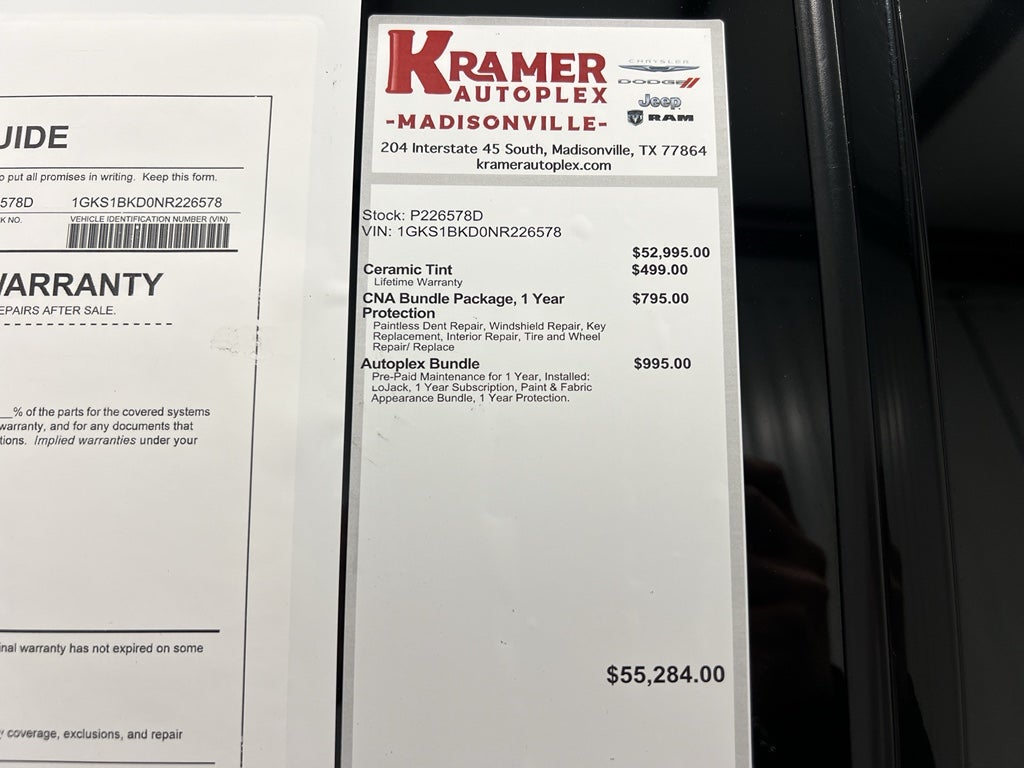Search inventory or contact us to schedule a test drive and experience the V8 power, premium audio, and connected cabin in person. Financing options are available to fit budgets. Don't miss this competitively priced 2022 GMC Yukon 1500 SLT with RWD and 5.3L V8 — the ideal blend of performance, tech, and comfort in Madisonville, TX.