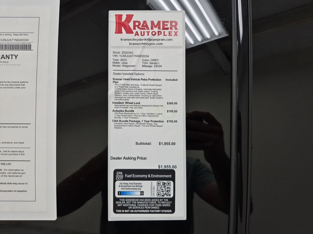 This vehicle is a certified CARFAX 1-owner. This Jeep Wagoneer's Forward Collision Warning feature alerts drivers to potential front-end collisions. This 2022 Jeep Wagoneer has auto-adjust speed for safe following. This 2022 Jeep Wagoneer comes equipped with Android Auto for seamless smartphone integration on the road. Never get into a cold vehicle again with the remote start feature on the Jeep Wagoneer. This vehicle has a clean CARFAX vehicle history report. Bluetooth® technology is built into this unit, keeping your hands on the steering wheel and your focus on the road. Keep your hands warm all winter with a heated steering wheel in this unit . Protect this 1/2 ton suv from unwanted accidents with a cutting edge backup camera system. This unit offers Apple CarPlay for seamless connectivity. The leather seats in this vehicle are a must for buyers looking for comfort, durability, and style. You'll never again be lost in a crowded city or a country region with the navigation system on the vehicle.