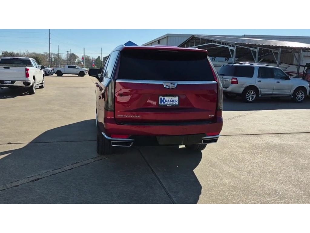 Preferred Equipment Group 1SB: Automatic Seat Belt Tightening; Power Panoramic Tilt-Sliding Sunroof; Mechanical Limited-Slip Differential; Door Lock and Latch Shields; Enhanced Automatic Parking Assist; Lane Change Alert with Side Blind Zone Alert; Rear Camera Mirror Washer; Rear Camera Mirror; Running Board Assist Steps; Heated and Ventilated Driver and Front Passenger Seats; Theft-Deterrent Alarm System; Reconfigurable Full-Color Head-Up Display; AKG Studio 19-Speaker Audio System; Vehicle Interior Movement Sensor; 22" 14-Spoke Alloy Wheels with Polished Finish; Rear Cross Traffic Alert; Vehicle Inclination Sensor; Reverse Automatic Braking; Glass Breakage Sensor; Premium Smooth Ride Suspension; Enhanced Automatic Emergency Braking; Adaptive Cruise Control. Super Cruise. Rear Seat Entertainment System. 3 Years of OnStar & Connected Services Plan. Radiant Red Tintcoat. Puddle Lamps with Cadillac Crest. Front License Plate Bracket. **Equipment listed is based on original vehicle build and subject to change. Please confirm the accuracy of the included equipment by calling the dealer prior to purchase.**