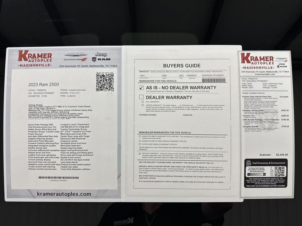 Discover this pristine 2023 Ram 2500 Longhorn in Madisonville, TX - a powerful 4WD heavy-duty pickup with only 12,169 miles, offering low mileage and exceptional value. Equipped with a rugged 6-cylinder, 6.7L diesel engine, this Longhorn delivers best-in-class towing capability, outstanding fuel efficiency for its class, and long-term durability for work or adventure.