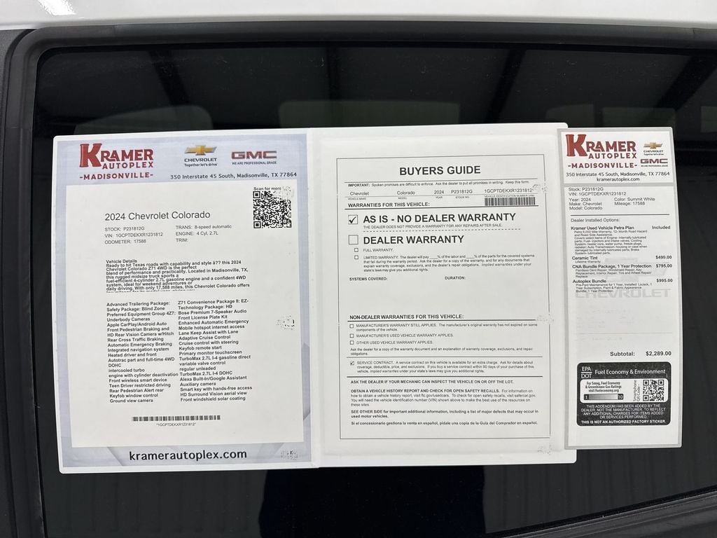 Experience rugged capability and modern comfort with this 2024 Chevrolet Colorado Z71 4WD, now available in Madisonville, TX. Powered by a fuel-efficient 2.7L 4-cylinder gasoline engine and equipped with four-wheel drive, this mid-size pickup delivers confident handling on tough trails and smooth performance around town. With just 17,588 miles, this Chevrolet Colorado offers low mileage and ready reliability for daily work or weekend adventures.