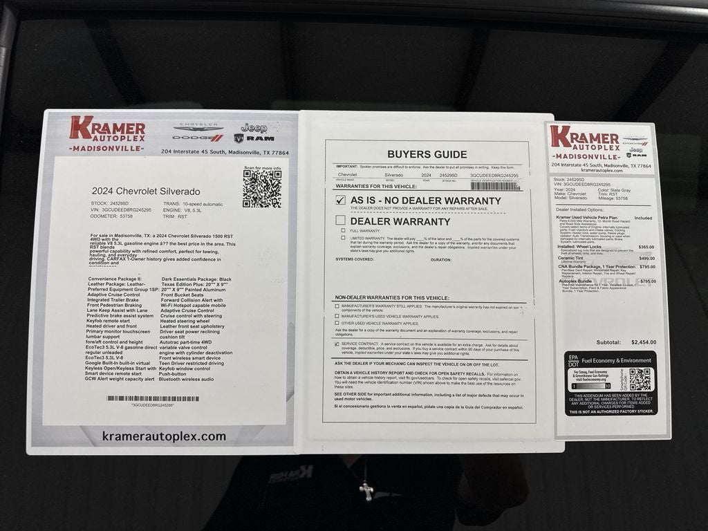 The 4WD system and V8 5.3L engine deliver impressive performance and towing capacity, while the RST trim offers a sporty aesthetic and upgraded interior touches. Recent service and a clean history ensure this Chevrolet Silverado is ready for work or weekend adventure. Competitive pricing guarantees you're getting the best value in Madisonville, TX — don't miss this opportunity to own a capable, feature-rich pickup at a market-leading price.