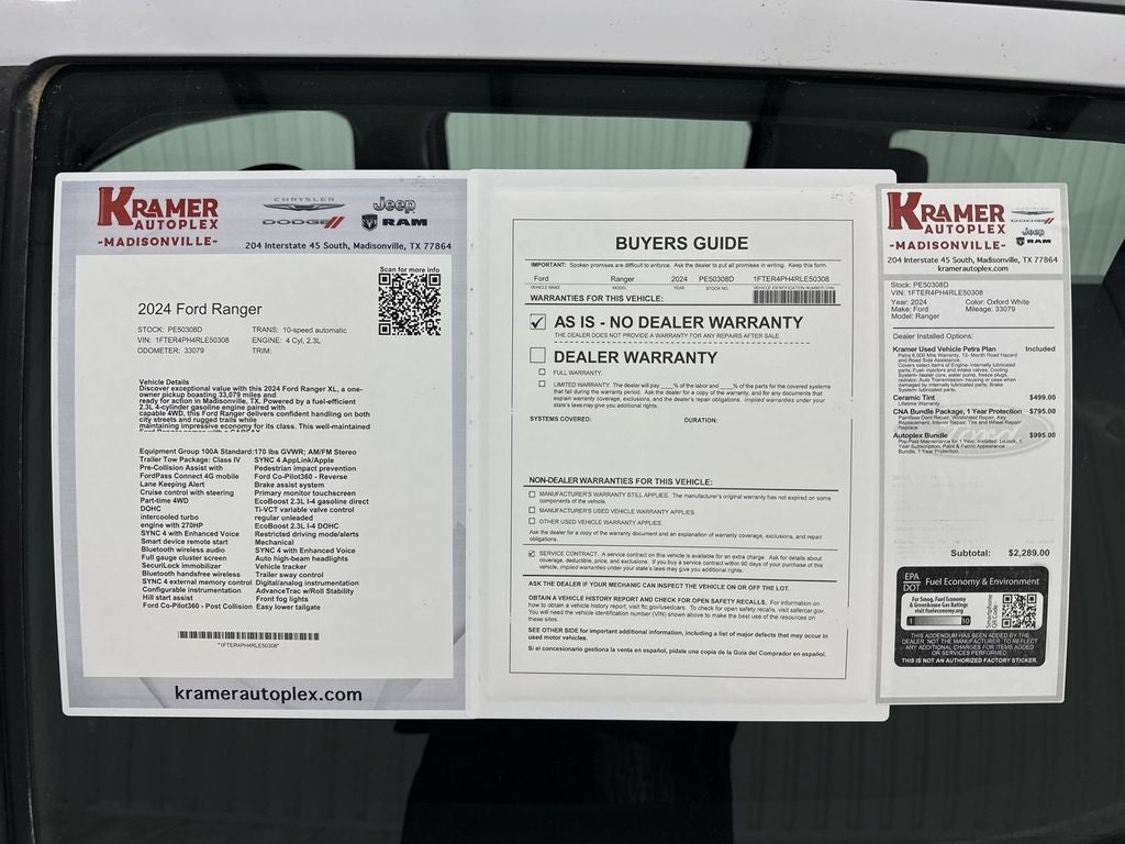 2024 Ford Ranger XL — 4WD, 2.3L 4-Cylinder, 33,081 miles — Madisonville, TX