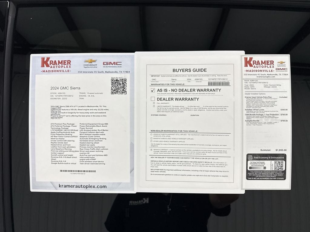 This 2024 GMC Sierra 2500 AT4 in Madisonville, TX, delivers exceptional value: low miles, diesel durability, advanced driver aids, and the best price available. Contact us today to schedule a test drive and see why this GMC Sierra is the smart choice for drivers who demand power, technology, and confidence on and off the road.