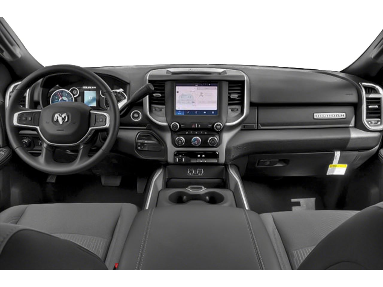 Quick Order Package 2HZ Big Horn. Level 1 Equipment Group: Leather Wrapped Steering Wheel; Rear Dome with On/off Switch Lamp; Front Fog Lamps; Premium Cloth 40/20/40 Bench Seat; Glove Box Lamp; Auto Power-Folding Mirrors; Footwell Courtesy Lamp; Exterior Mirrors with Heating Element; Mirror Running Lights; Uconnect 5 with 8.4" Display Radio; Foam Bottle Insert (door Trim Panel); Black Exterior Mirrors; 18" X 8.0" Polished Aluminum Wheels; Big Horn Instrument Panel Badge; Power-Adjustable Convex Aux Mirrors; Forward and Reverse Utility Lights; Locking Lower Glove Box; Power Heated Fold Telescopic Mirrors; Exterior Mirrors with Supplemental Signals; Steering Wheel Mounted Audio Controls; Exterior Mirrors Courtesy Lamps; Dual Glove Boxes; Center Hub; Power Adjust Mirrors; 2nd Row in Floor Storage Bins; Power Telescoping Mirrors. Quick Order Package 2GZ Big Horn. Premium Cloth 40/20/40 Bench Seat. Uconnect 5 with 8.4" Display Radio. Chrome Flat Cab-Length Side Steps. MOPAR Spray in Bedliner. 5th Wheel/gooseneck Towing Prep Group. Front Fog Lamps. Power 2-Way Driver Lumbar Adjust. **Equipment listed is based on original vehicle build and subject to change. Please confirm the accuracy of the included equipment by calling the dealer prior to purchase.**