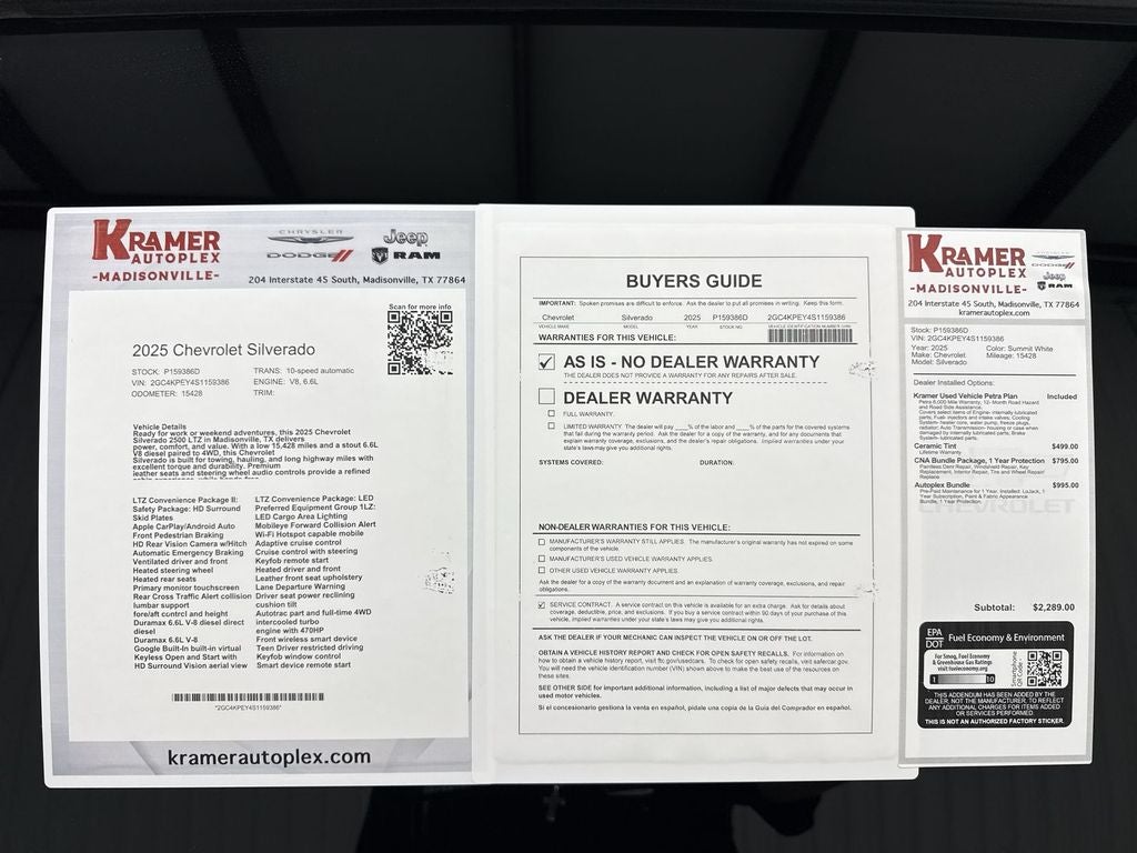 2025 Chevrolet Silverado 2500 LTZ — low-mileage, diesel V8 power and 4WD, located in Madisonville TX. This rugged workhorse combines a potent 6.6L V8 Diesel with heavy-duty capability and refined LTZ comfort. With only 15,428 miles, this Chevrolet Silverado delivers long-term value and reliability for towing, hauling, or daily driving.