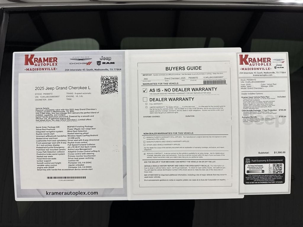 Don't miss this exceptional opportunity in Madisonville, TX—low mileage, well-equipped, and priced to sell. Experience the 2025 Jeep Grand Cherokee L Limited's blend of performance, technology, and comfort today. Schedule a test drive and see why this is the best-priced Jeep Grand Cherokee L Limited available.