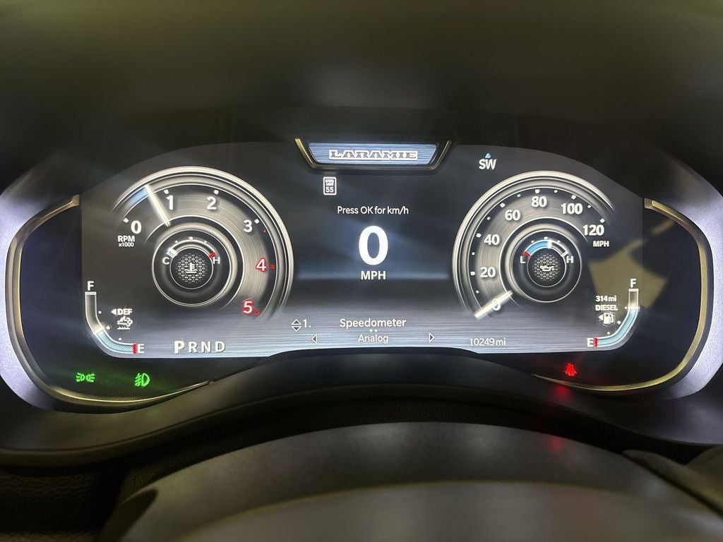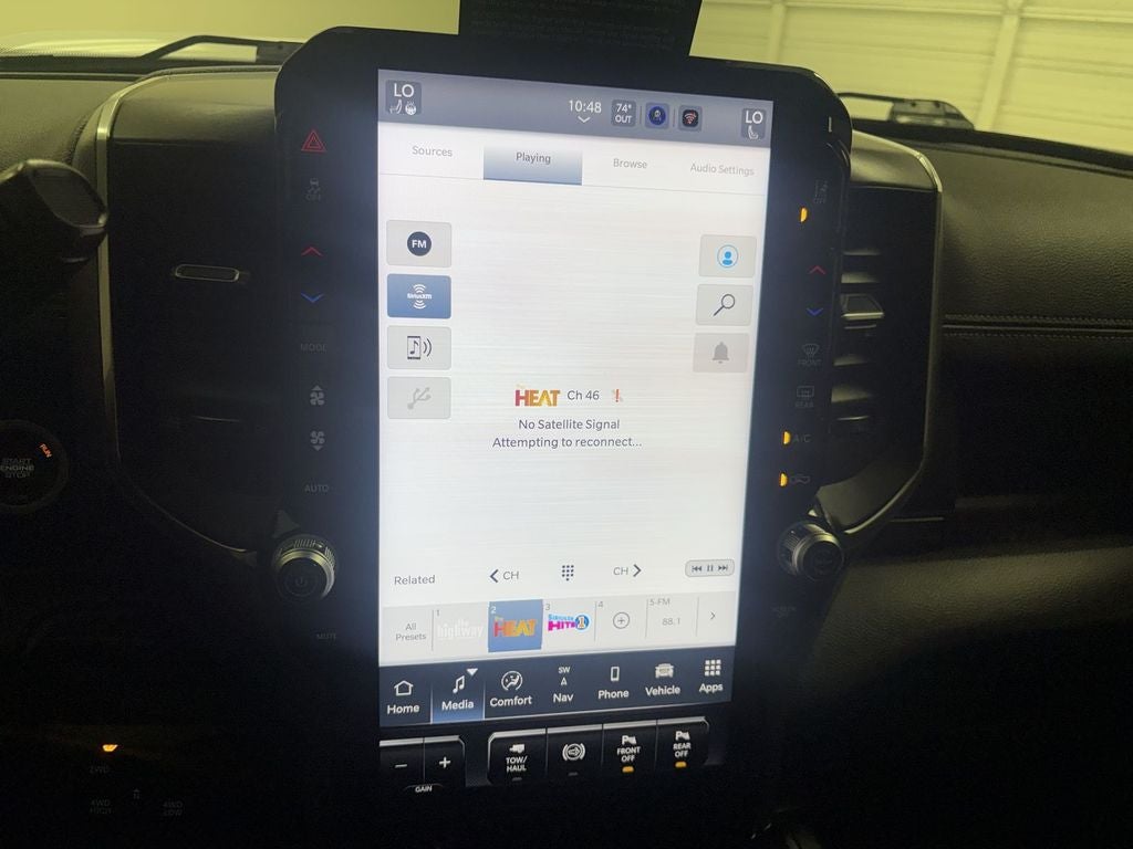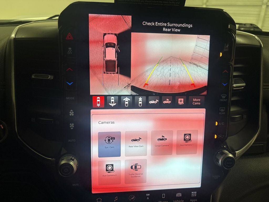 Quick Order Package 24H Laramie. Night Edition: LT285/60R20E OWL On/off Road Tires; Black Exterior Truck Badging; 20" X 8.0" Black Painted Aluminum Wheels; Gloss Black Grille Billets/accents; Body Color Grille Surround; Sport Performance Hood; Black Exterior Mirrors; Black Wheel Center Hub. Towing Technology Group: Center Stop Lamp with Cargo View Camera; Surround View Camera System; Trailer Tire Pressure Monitoring System; Trailer Reverse Guidance. Laramie Level 2 Plus Equipment Group: Google Android Auto; SiriusXM Radio Service; Power Adjustable Pedals with Memory; Integrated Voice Command with Bluetooth®; Emergency Vehicle Alert System (EVAS); Power Deployable Running Boards; Auto Power-Folding Mirrors; Anti-Spin Differential Rear Axle; Mirror Running Lights; Drowsy Driver Detection; MOPAR Deployable Bed Step; Alexa Built-In; Apple CarPlay; Power Adjustable Convex Aux Mirrors; Active Lane Management System; Forward and Reverse Utility Lights; Disassociated Touchscreen Display; Remote Tailgate Release; 17 Speaker Harman/kardon Premium Sound; 2nd Row in Floor Storage Bins; Center Stop Lamp with Cargo View Camera; Rain Sensitive Windshield Wipers; LED Bed Lighting; Traffic Sign Recognition; Connectivity - US/Canada; GPS Navigation; 4G LTE Wi-Fi Hot Spot; Adaptive Steering System; GPS Antenna Input; Exterior Mirrors with Heating Element; Auto Dim Exterior Mirror; SiriusXM with 360L; Global Telematics Box Module; Connected Travel and Traffic Services; Foam Bottle Insert (door Trim Panel); Off-Road Info Pages; Selectable Tire Fill Alert; Trailer Tow Pages; Leather Trimmed Bucket Seats; HD Radio; 14.4" Touchscreen Display; Power Heated Fold Telescopic Mirrors with Memory; Exterior Mirrors with Supplemental Signals; Exterior Mirrors Courtesy Lamps; Uconnect 5 Nav with 14.4" Display; MOPAR Spray in Bedliner; Auto High Beam Headlamp Control; Chrome Exterior Mirrors; Exterior Mirrors with Memory; Power Adjust Mirrors; Power Telescoping Mirrors; Auto Dim Exterior Passenger Mirror; Auto Adjust in Reverse Exterior Mirrors. Power Sunroof. Power Deployable Running Boards. Leather Trimmed Bucket Seats. 5th Wheel/gooseneck Towing Prep Group. Center Stop Lamp with Cargo View Camera. MOPAR Front and Rear Rubber Floor Mats. Clearance Lamps. Transfer Case Skid Plate Shield. **Equipment listed is based on original vehicle build and subject to change. Please confirm the accuracy of the included equipment by calling the dealer prior to purchase.**