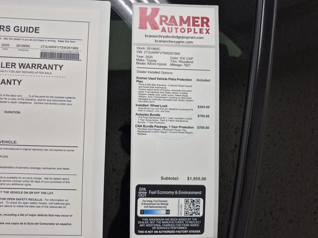 2025 Toyota RAV4 Hybrid Woodland — AWD, 2.5L 4-Cyl Full Hybrid Electric (FHEV), 7,921 miles. Located in Livingston, TX, this Toyota RAV4 Hybrid delivers exceptional fuel efficiency, confident handling, and advanced safety tech at the best price in the area. Low mileage and CARFAX 1-Owner history mean you're getting a gently pre-owned, well-maintained SUV ready for daily commutes and weekend adventures. Features you'll appreciate: - Efficient 2.5L 4-cylinder Full Hybrid powertrain with AWD for improved traction and economy - Cross-Traffic Alert and Blind Spot Monitor for safer lane changes and backing maneuvers - Back-Up Camera and advanced driver assistance systems to simplify parking and tight turns - Remote Start for convenience and comfort on hot or cool mornings The Woodland trim adds stylish exterior accents and a refined interior designed for comfort and durability. With its combination of hybrid efficiency, low mileage, and comprehensive safety features, this RAV4 represents outstanding value for families and individuals alike. Priced to sell — the best deal on a 2025 Toyota RAV4 Hybrid in Livingston, TX. Schedule a test drive today and experience the blend of efficiency, versatility, and modern technology this vehicle offers. CARFAX 1-Owner documentation available for review.